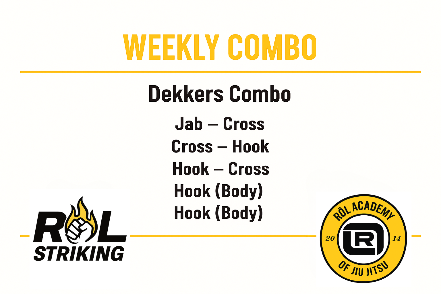 Rol Striking Flash Card #1 - the Dekkers Combo. This combo is inspired by Ramon Dekkers and is one of the Sweet 16 combos. "Heart" for more...